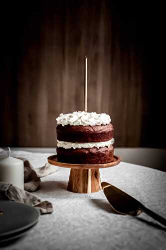 Layer cake avec une base fondante de brownie et une délicieuse et légère crème au mascarpone (petit layer cake de 12 cm de diamètre 8/10 parts)