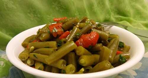 INGRÉDIENTS / INGREDIENTS / INGREDIENTES / المكونات 600 g haricots verts, 1 poivron rouge rôti, 2 cuillères à soupe d’hui.