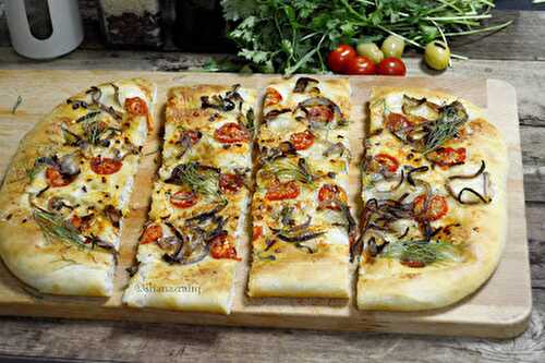 Focaccia is an Italian version of a flat-baked bread similar to that of a thick crust pizza base.