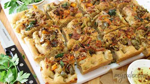 This easy Italian tomato and onion focaccia bread is as a tasty appetizer.