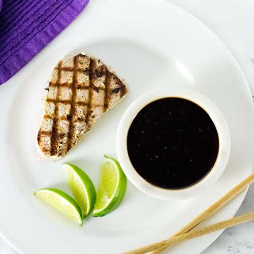These grilled tuna steaks are dusted with salt and pepper, seared over hot coals, and served with an Asian-inspired spicy ponzu dipping sauce.