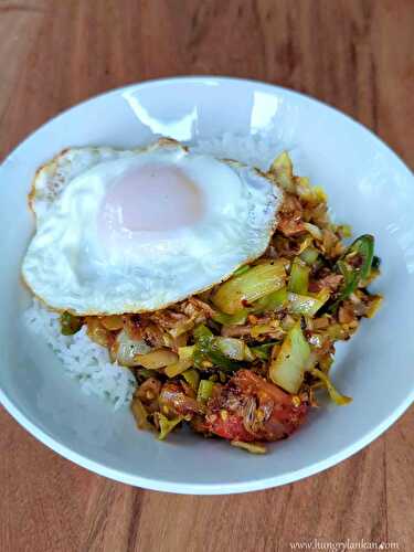 Umami salty and spicy Tuna Cabbage stir-fry for a quick and healthy delicious meal.
