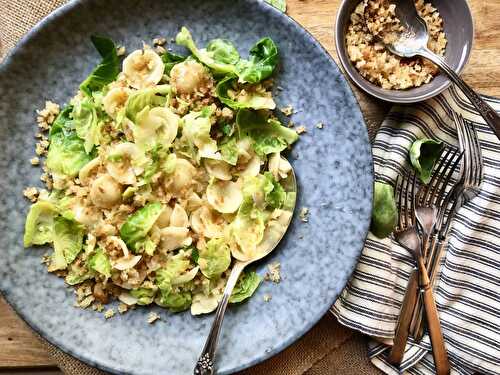 This high protein healthy Brussel sprouts and bacon pasta dinner is almost too good to be true! It uses chickpea pasta to bump up the protein but keeps the flavor with the classic brussel sprout bacon combo, it's going to be your new go to dinner!