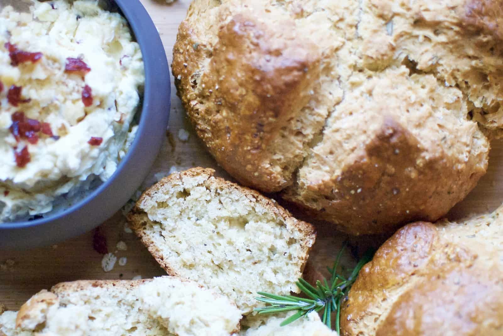 This small loaf of Easy Irish Soda Bread with Cheddar is a quick bread recipe that does not require yeast.