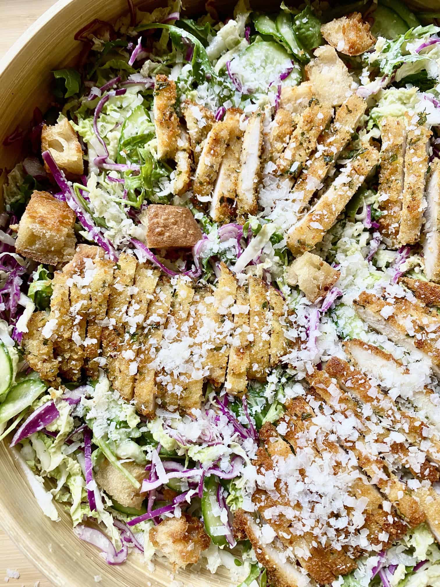 Mmmmmmm crispy chicken cutlets, how could you not like it? Fried in a generous amount of olive oil, lotsa crunch, a little greasy, salty.