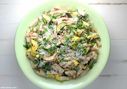 Pasta with grilled chicken and zucchini is an easy AND delicious dinner, ready in less than 30 minutes!
