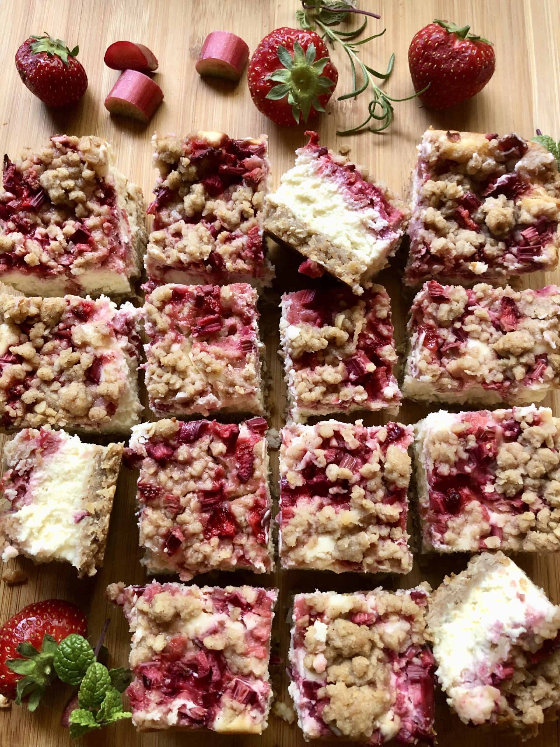 These scrumptious Awesome Strawberry Rhubarb Oatmeal Bars won a Pennsylvania State Fair Butter Cookie Contest and it's no wonder with the mouth-watering sweet and tart flavors of strawberry and rhubarb pie flavor baked in a yummy oatmeal crust.