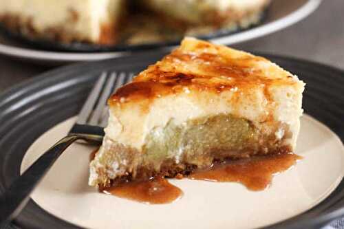 This baked ginger and rhubarb cheesecake is topped with crispy brûléed sugar, and uses gingernut biscuits in the base.