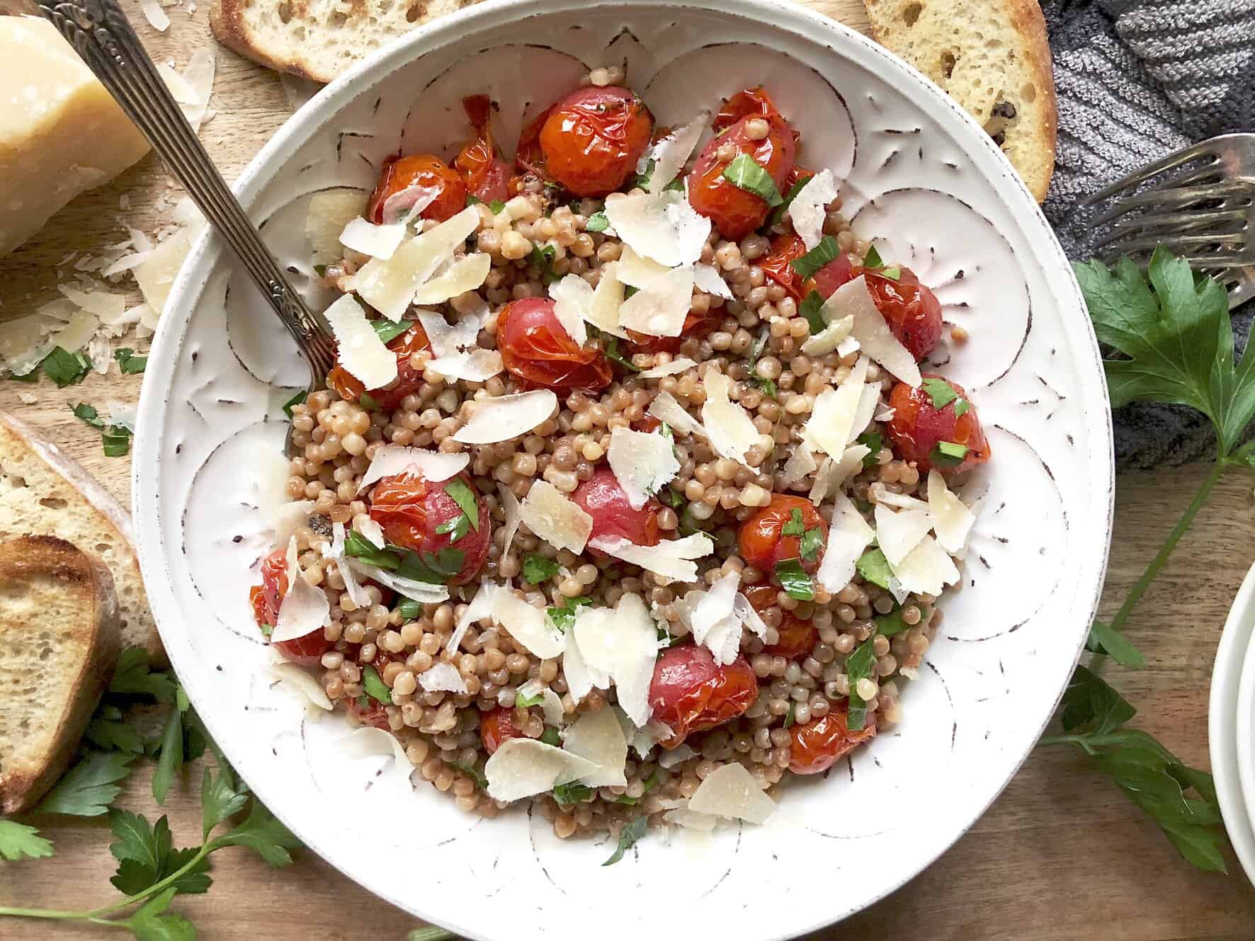 A delicious twist on the classic risotto is this pearl couscous risotto.