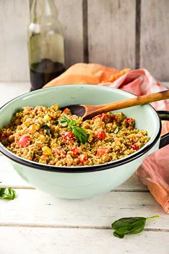This nice pearl couscous salad recipe features pearl couscous as well as ingredients like sun-dried tomatoes, green olives and onion as well.