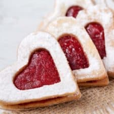 These raspberry shortbread linzer cookies are buttery, melt in your mouth, shortbread cookies filled with a layer of raspberry jam and will dazzle at your next holiday celebration! These cookies are delicate, buttery, crisp, and perfect for Valentine's.