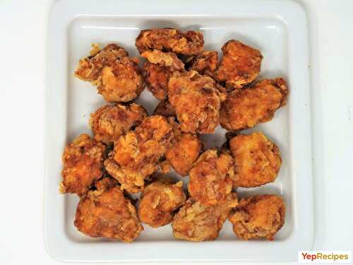 Chicken breast nuggets coated in flour and spices then shallow fried in a wok until crispy.