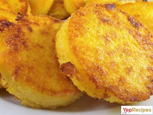 Homemade polenta made with garlic and Parmesan cheese then cut into strips and baked until crisp.