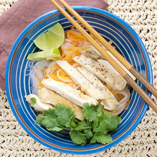 Vietnamese lemongrass chicken rice noodles is a great dish to make with you Banh Mi leftovers.