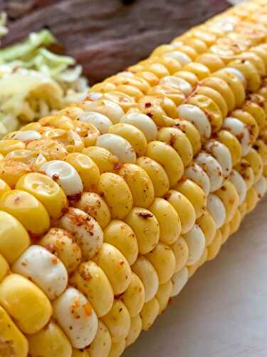 The Tajin Seasoning gives these Grilled Corn on the Cob a great flavor.
