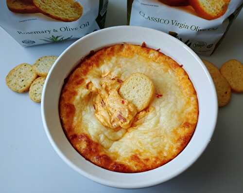 Cheesy Baked Spicy Italian Dip is an incredibly delicious warm dip that's loaded with three types of cheese, garlic, chopped salami, and spicy Calabrian chili peppers.