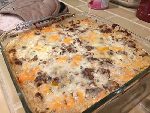 This Spicy Sausage Dip is a great spicy and cheesy dip for your next party! Serve it with crackers or toasted baguettes.