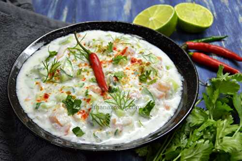 A refreshing summer dip with yogurt mixed with crunchy salad seasoned with Indian spices.