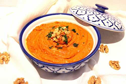 Muhammara is a Middle Eastern roasted red pepper dip that is slightly smoky, savory, and packed with flavors.