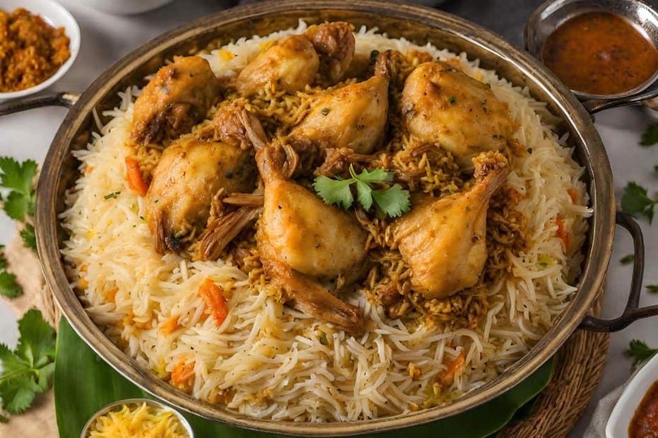 Hyderabadi biryani is one of the most popular biryanis made with basmati rice.