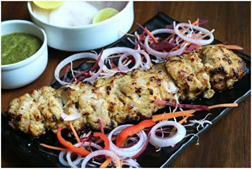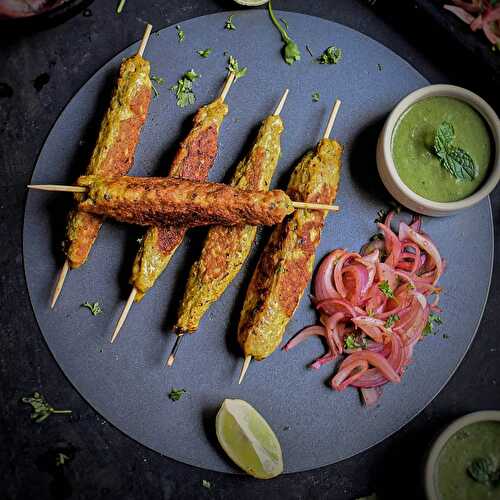 Spiced and Flavourful minced chicken skewered to cylindrical shape and grilled.