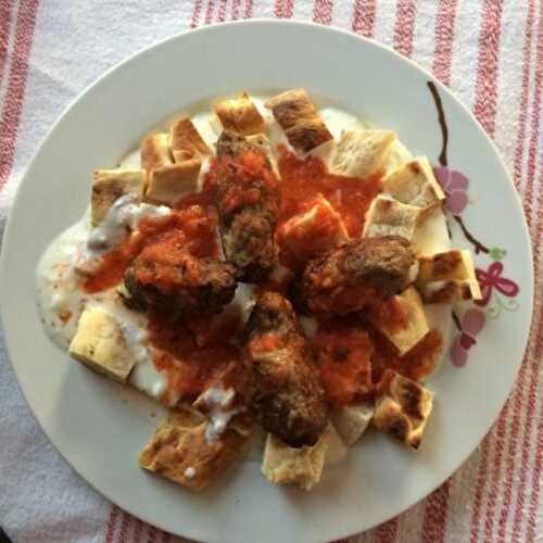 Meatball Kebab with Yogurt and Flatbread is a kebab you can prepare at home.
