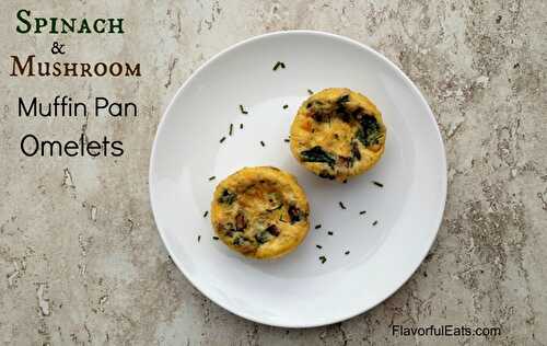 Spinach & Mushroom Muffin Pan Omelets are tasty little omelets filled with spinach, mushrooms, and cheese that are conveniently made in a muffin pan! Perfect healthy on-the-go breakfast or lunch!