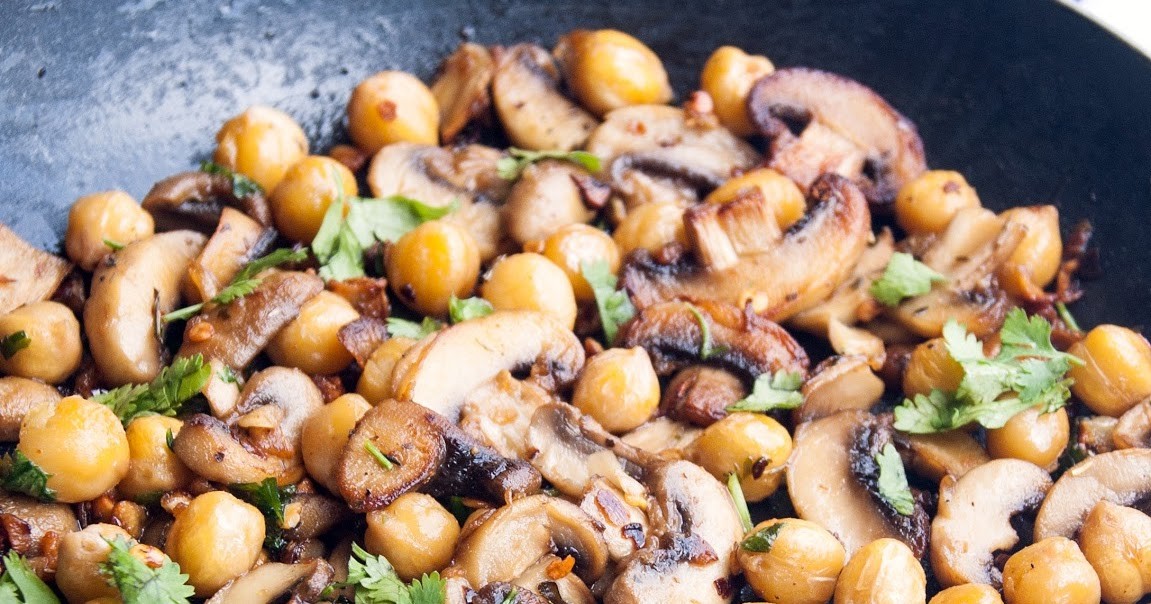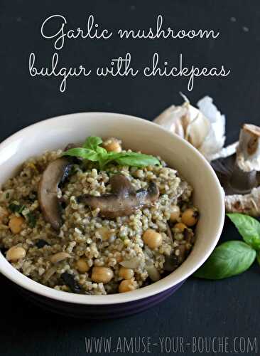 Garlic mushroom bulgur wheat with chickpeas, a quick and easy vegetarian light lunch or side dish.