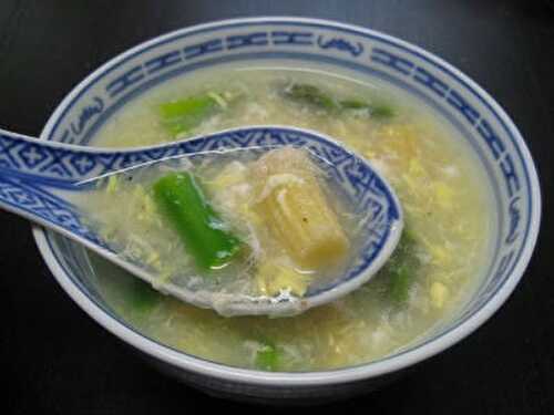 This beautiful green asparagus and pea soup is a super fast recipe that tastes fresh and light.