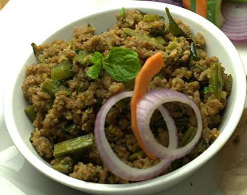 South Indian style stir-fried beans with minimal spices and loads of freshly grated coconut.