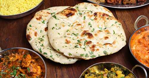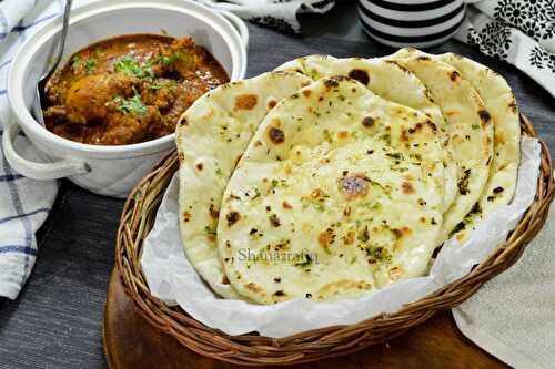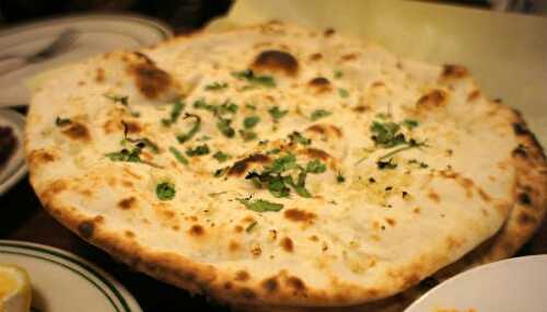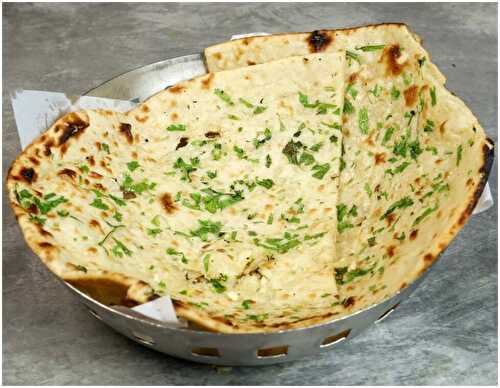 Soft Indian garlic and thyme Naan bread dough has complex flavors like yogurt, milk, sugar, butter, egg and all-purpose flour, with yeast or baking soda to aid fermentation.