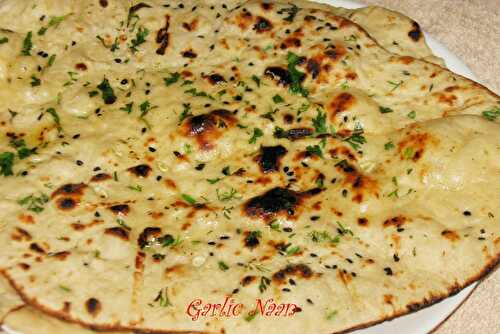 Garlic Naan is a Indian leavened bread made with whole wheat flour ,yeast and minced garlic for garlic flavour