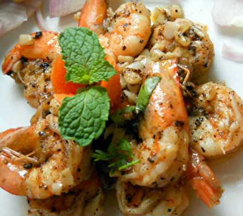 Light stir fry with shrimp and herbs along with a touch of Indian spices