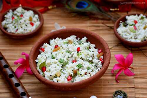 Gopalkala is a savoury dish prepared using flattened rice , curd , cucumber , coconut , green chillies and tempered with clarified butter
