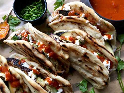Adapted from Chef Tim LoveGrilled pizza crust forms the "shell" of these tasty tacos, loaded with grilled zucchini, mozzarella & ricotta.