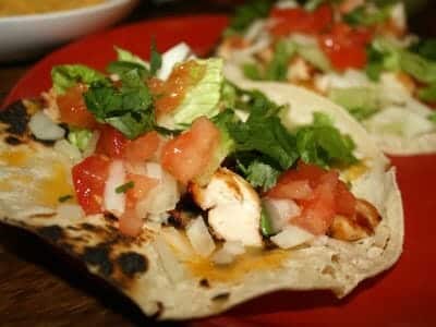 In this Grilled Shrimp Tacos recipe, shelled shrimp is marinated in a piquant, spicy Chipotle-Lime sauce, grilled and then served with a delectable and colorful Tomato-Mango Salsa.