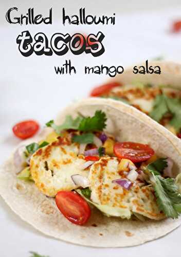 These grilled halloumi tacos are piled high with a fresh and juicy mango salsa that goes just perfectly with the salty cheese! A match made in heaven!