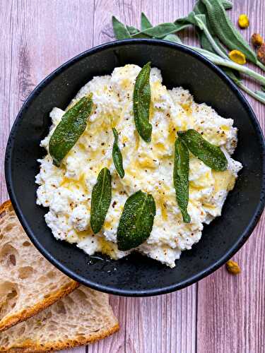 There’s only one way to enjoy ricotta toast: it’s with hot honey, pistachios and fresh thyme! The perfect ricotta appetizer that’s so easy to make even though they look fancy!