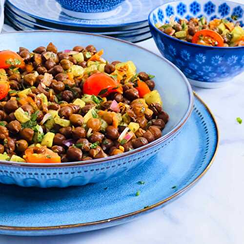 Kala chana chaat is a healthy, filling, and nutritious salad made using black chickpeas, veggies, herbs, and spices.