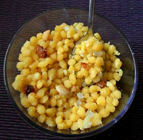 Boondi is a Rajasthani snack made from fried chickpea flour.