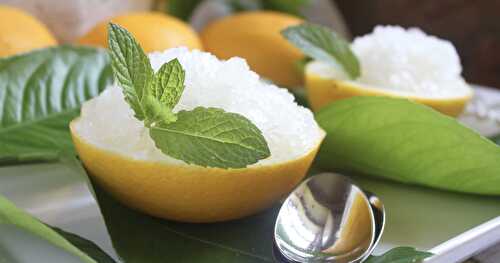 Serve this lemon slushie, frozen iced dessert in a lemon shell for rave reviews.