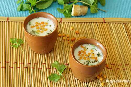 Masala Boondi Buttermilk (Chaach, Chaas) Prep time: 10 mins Cooking Time:00 mins Total Time: 10 mins Servings: 2 Masala Boondi Buttermilk is a