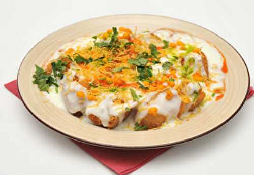 Aloo dahi chaat is one of the most desired Indian street food recipes in summer where deep fried potato chunks are topped with chilled yogurt along with some components of chaat like chutneys, sev, raw onion, coriander leaves and few spices.
