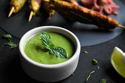 Mint Chutney or mint dip used for tandoor dishes is a delicious dipping sauce made with fresh mint leaves, coriander leaves , yogurt , onion and spices.