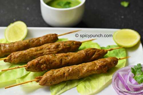 Spiced and Flavourful minced chicken skewered to cylindrical shape and grilled.