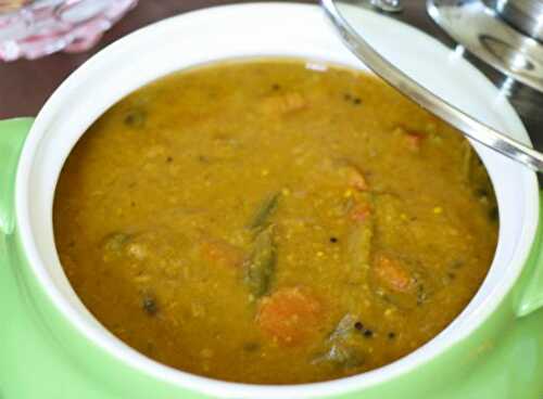 Tiffin Sambar is a typical South Indian homestyle sambar prepared with lentils and vegetables.