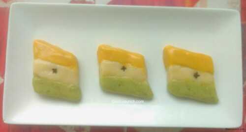 How to make Tricolor Sweet Barfi with: Take the diamond-shaped mould or mold, greased with little ghee.