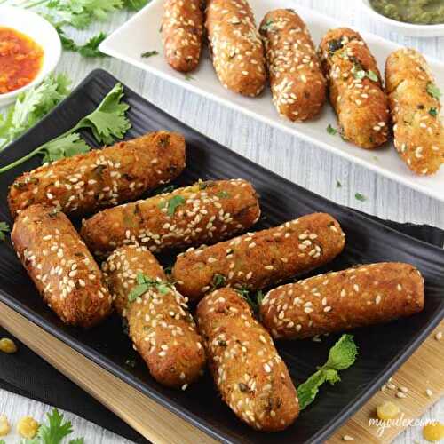 This crispy snack is made from potato and chana dal (lentil) mixture that is perked up with flavours of garlic, ginger, fresh herbs and basic kitchen spices.