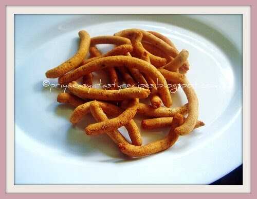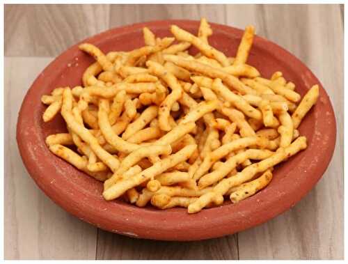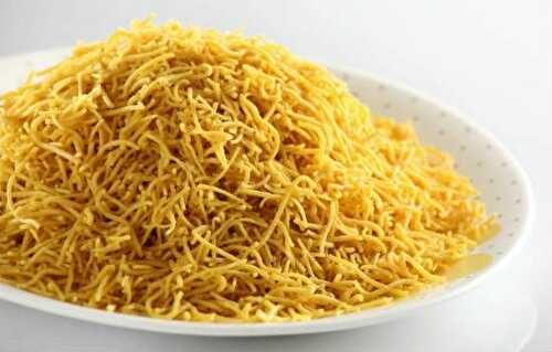 Sweet sev is a crunchy snack made with gram flour and rice flour.