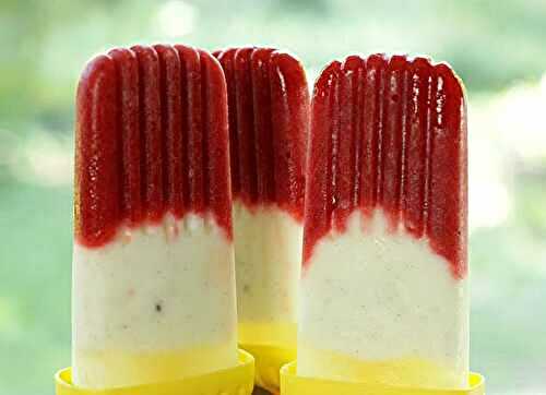 These Strawberry, Vanilla Yogurt and Limeade Popsicles are a cool summer treat combining fresh fruit and sweetened yogurt.